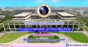 Read More »TCAS69 รอบ3 Admission คณะพยาบาลศาสตร์ มหาวิทยาลัยมหิดล