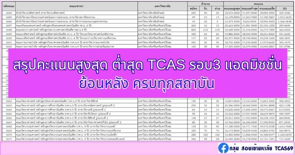 คะแนนสูงสุด ต่ำสุด ของคณะ สาขาแต่ละมหาวิทยาลัย TCAS 67 รอบที่3 Admission  คลิกอ่านที่นี่