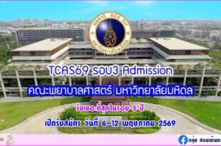 Read More »TCAS69 รอบ3 Admission คณะพยาบาลศาสตร์ มหาวิทยาลัยมหิดล
