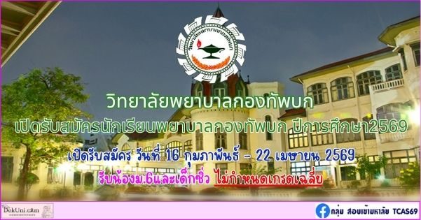 วิทยาลัยกองทัพบก เปิดรับสมัครนักศึกษาใหม่ หลักสูตรพยาบาลศาสตรบัณฑิต ประเภท รับตรง69 ปีการศึกษา2569 โดยมีรายละเอียดดังต่อไปนี้
