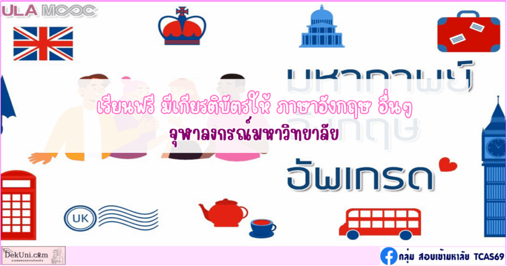 จุฬาลงกรณ์มหาวิทยาลัย ชวนน้องระดับ ม.ปลาย และผู้ที่สนใจเข้าเรียน คอร์ส เรียนฟรี มีเกียรติบัตรให้ ภาษาอังกฤษ อื่นๆ โดยมีรายละเอียดดังต่อไปนี้