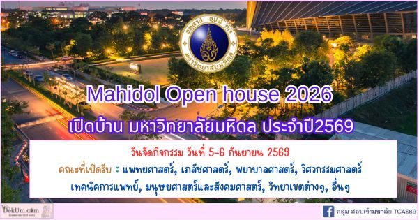 มหาวิทยาลัยมหิดล ประกาศกำหนดการ Mahidol Open house 2026 เปิดบ้าน มหาวิทยาลัยมหิดล ประจำปี 2569 โดยมีรายละเอียดดังต่อไปนี้