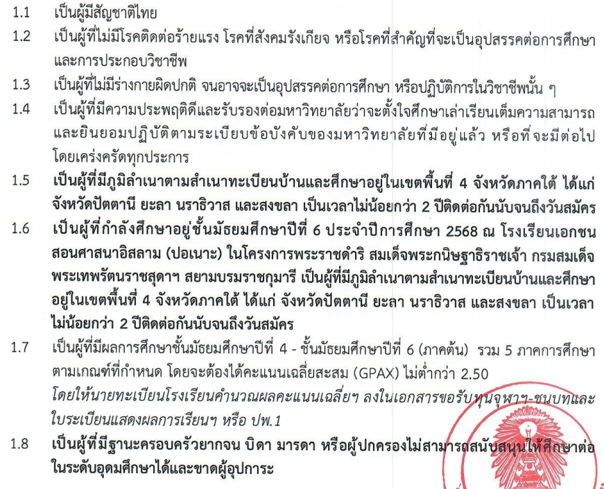 เป็นผู้ที่มีฐานะครอบครัวยากจน บิดา มารดา หรือผู้ปกครองไม่สามารถสนับสนุนให้ศึกษาต่อระดับอุดมศึกษาได้