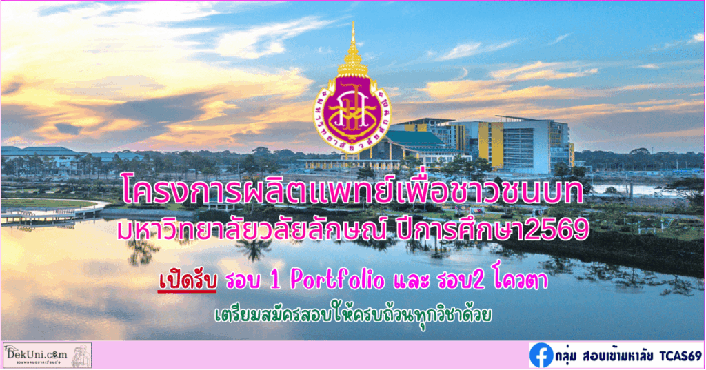มหาวิทยาลัยวลัยลักษณ์ เปิดรับสมัครนักศึกษาใหม่ โครงการผลิตแพทย์เพื่อชาวชนบท หลักสูตรแพทยศาสตรบัณฑิต ปีการศึกษา2569 โดยมีรายละเอียดดังต่อไปนี้