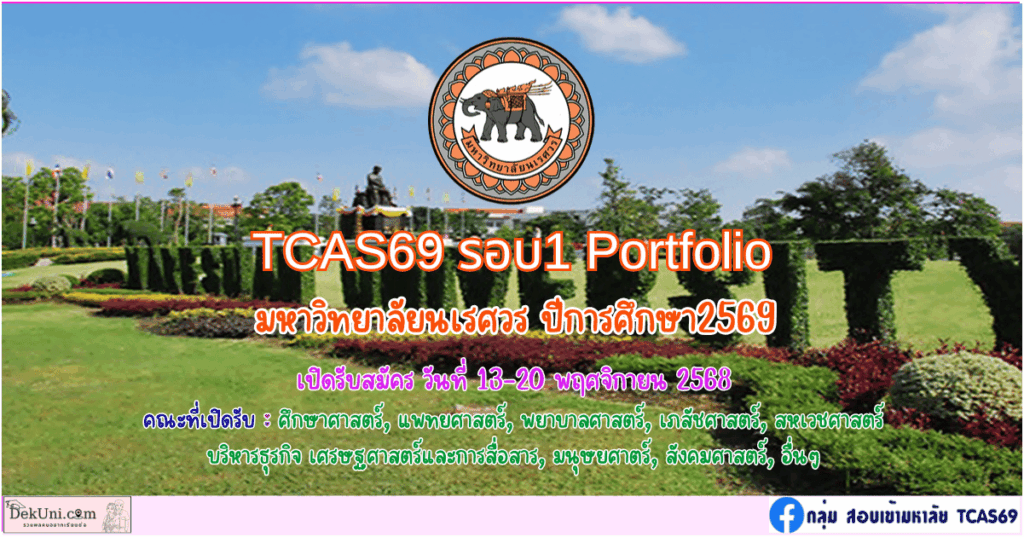 TCAS69 รอบ1 Portfolio มหาวิทยาลัยนเรศวร ปีการศึกษา2569