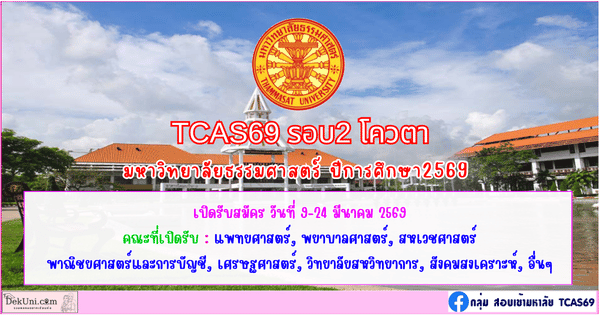 TCAS69 รอบ2 โควตา มหาวิทยาลัยธรรมศาสตร์ ปีการศึกษา2569