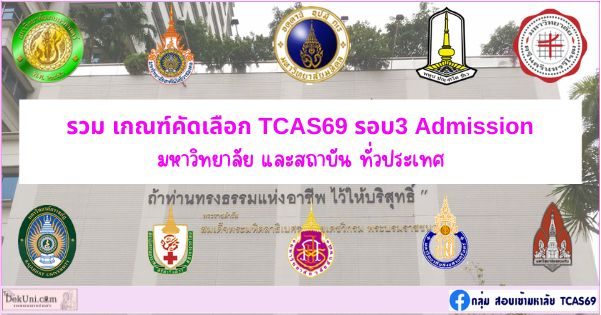 รวมเกณฑ์ TCAS69 รอบ3 Admission ปีการศึกษา2569 ทั่วประเทศ