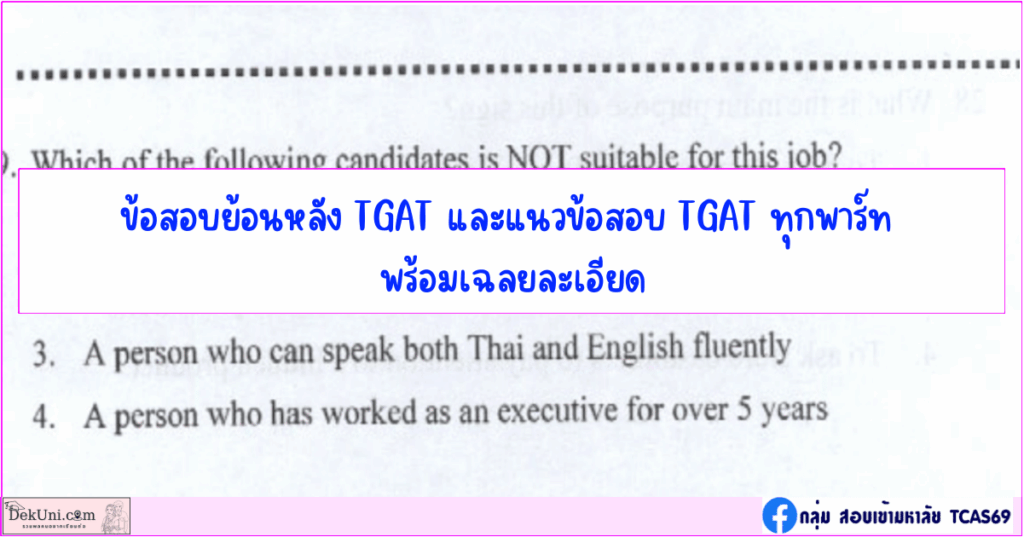3. แนวข้อสอบ TGAT (โจทย์ยาก) พร้อมเฉลยละเอียด <<คลิกอ่านที่นี่>>