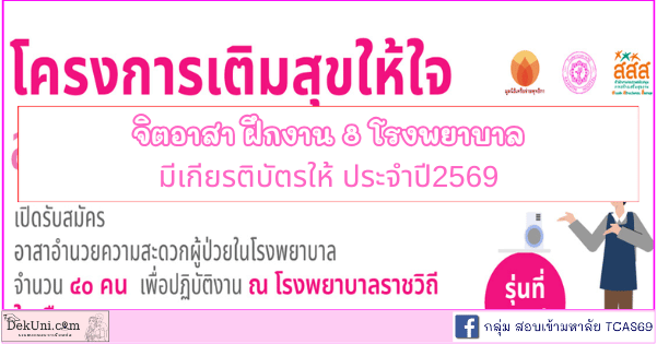 มาแล้วจ้า จิตอาสา 8 โรงพยาบาล มีเกียรติบัตรให้ ประจำปี2569 มีหลายโรงพยาบาล ให้น้องได้สมัคร เพื่อฝึกนิสัยจิตสาธารณะต่อไป